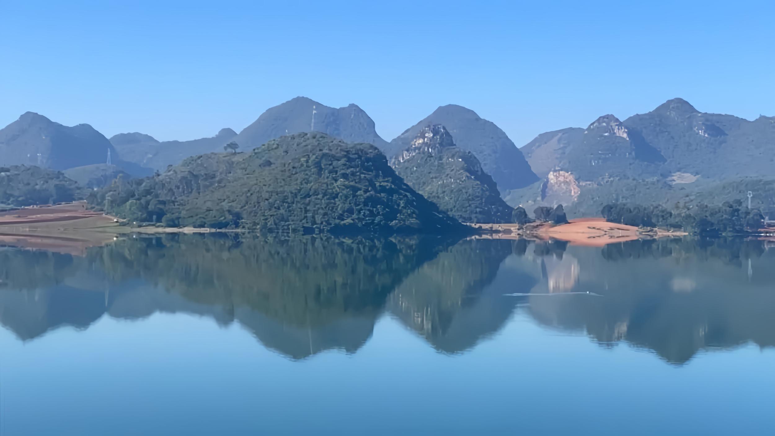 澄澈湖面如镜,天光山色入画,文山壮族苗族自治州砚山县平远镇丰收水库的水畔倒影,是大自然馈赠的视觉盛宴。