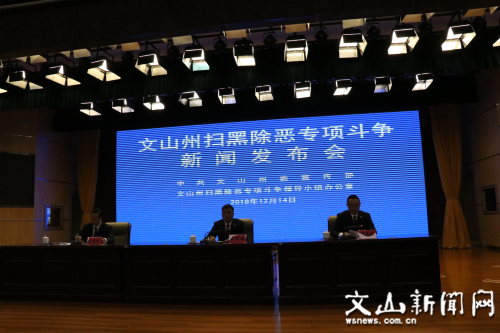 12月14日下午,由中共文山州委宣传部和文山州扫黑除恶专项斗争领导小组办公室共同主办,文山州中级人民法院承办的文山州扫黑除恶工作专项斗争集中宣判新闻发布会举行。