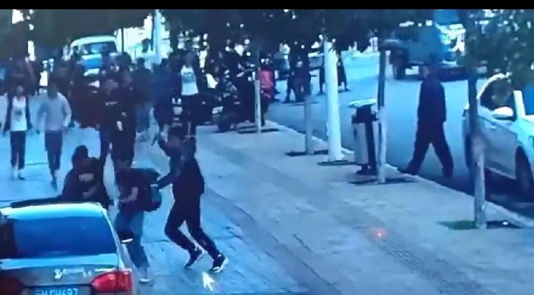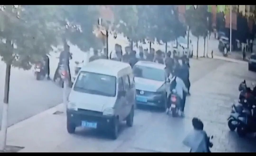 视频中显示:就在文山市一初北校区学校附近,只见十几人对两名学生拳脚相向,由于寡不敌众,被打之人毫无还手之力,场面一度陷入混乱!