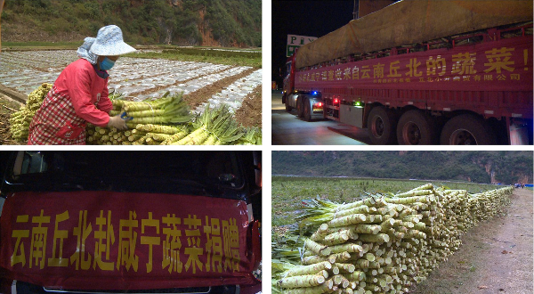 丘北小开商贸有限公司负责人 苟立开:“我们一直比较关心湖北疫情情况,作为一个青年,我们也想贡献自己的一份力量,把这些蔬菜捐赠给他们,希望能与他们共抗疫情。”