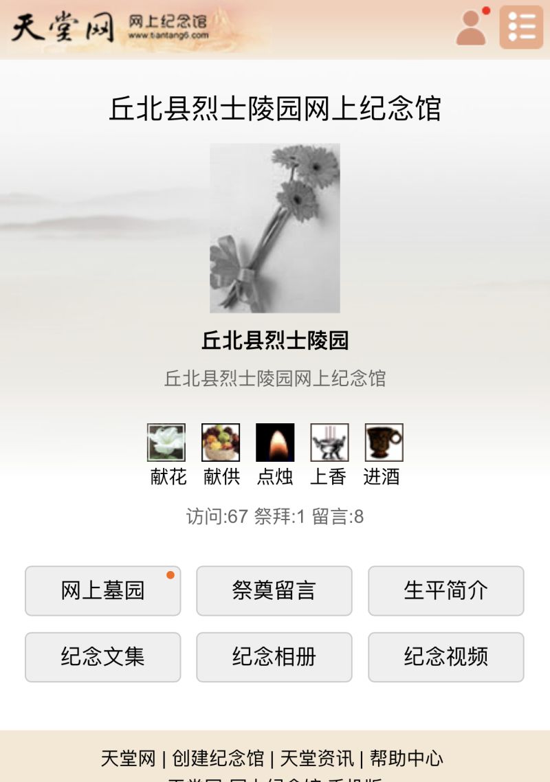 清明节期间,广大群众可以登录:(//www.tiantang6.com/m/102366945)进入"丘北县烈士陵园纪念馆",通过网络祭奠、网上献花等形式,进行网络祭英烈主题活动,以缅怀革命先烈,充分寄托哀思,弘扬革命传统。