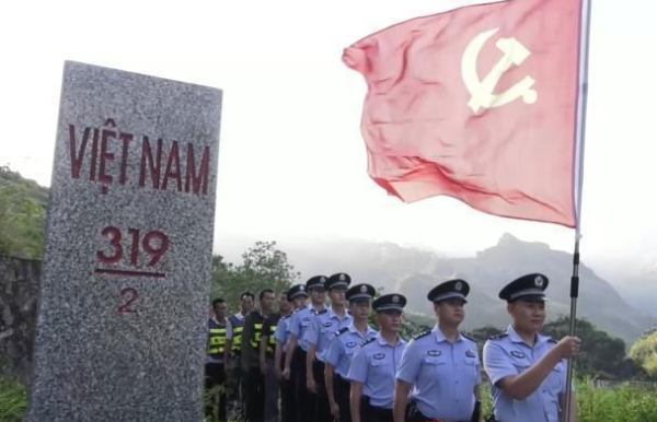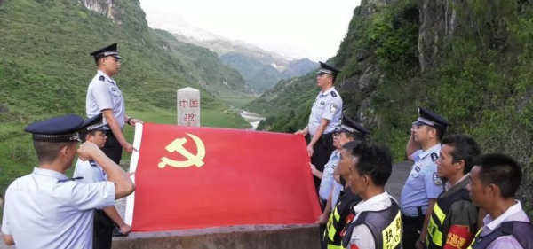 5月11日晚18时,八布边境派出所党员民警和群众在边境一线巡逻防控,并在中越边境线319附2号界碑处重温入党誓词。