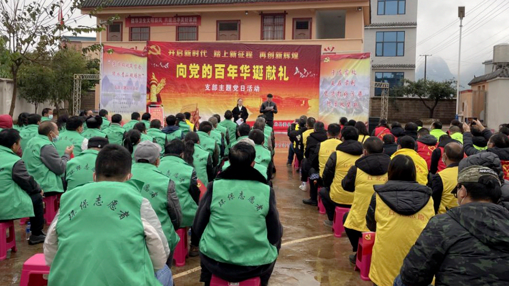 将志愿服务活动融入到支部主题党日活动中,根据每期不同的主题,将关爱特殊人群、普法宣传、民族团结、义务献血、爱国卫生运动、文明城市创建等志愿服务活动充分结合起来,多形式开展志愿服务活动。在11月份开展的“党旗领航筑信念 绿水青山砥砺行”支部主题党日活动当天,150余名党员组成的环保志愿者通过文艺宣传、法制宣讲、发放宣传资料等方式向八道哨彝族乡的村民宣传了《普者黑景区管理条例》《中华人民共和国环境保护法》等资料1000余份。
