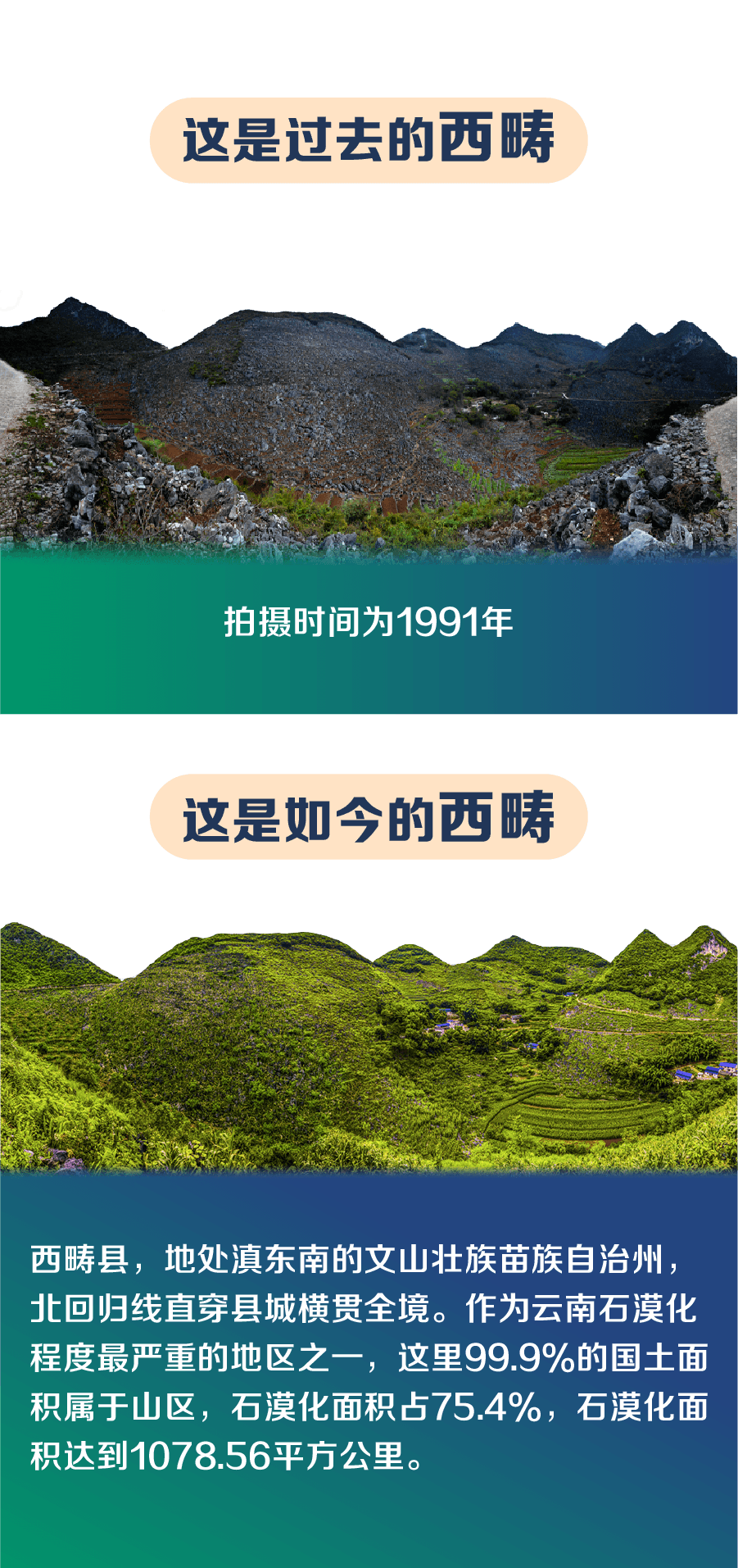 然而,西畴人不等不靠不认命——在悬崖上用大锤一锤一锤地打,用凿子一下一下地凿,凿出条条脱贫路;“向大石头要地,向石旮旯要粮”,把石头垒成地埂,把泥土填成土地,“无中生有”造出良田;自发达成“占地不补、拆房不补、砍树不补”的共识,舍小家顾大家,让石头窝里阡陌相通……