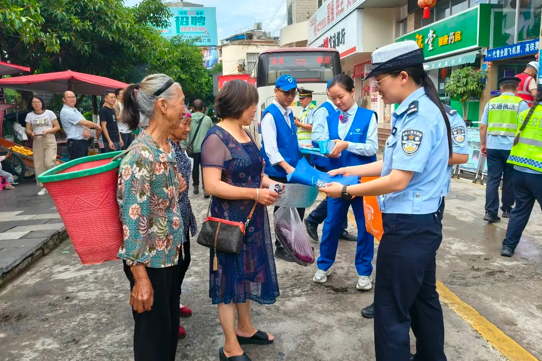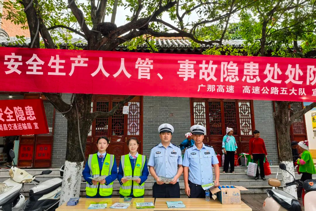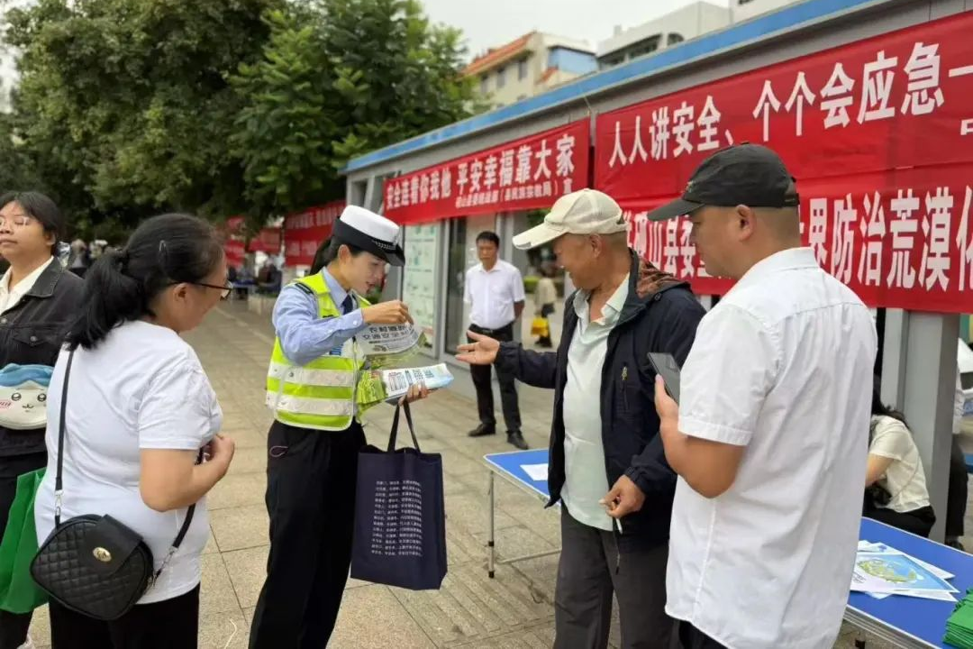 6月15日,文山州公安局交管支队高速公路五大队联合广那高速运营公司,利用传统“赶集日”人流密集契机,在广南县莲城镇莲湖公园开展交通安全宣传活动。