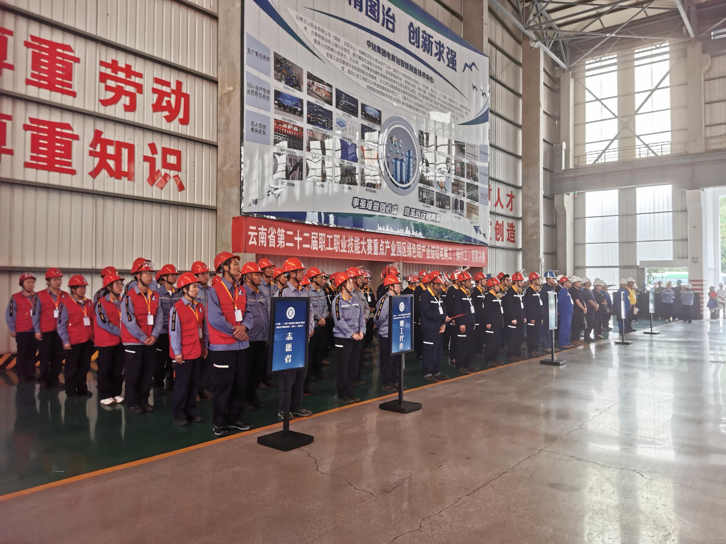 本次赛事由云南省总工会、省工业和信息化厅、省人力资源和社会保障厅、省工商业联合会联合主办,云南省煤炭电力化工工会、文山州总工会、云南铝业股份有限公司工会承办,精准锁定绿色铝产业链的铝电解工(操作工)岗位展开比拼。自7月启动选拔以来,赛事覆盖全省产业链企业,吸引近2200名产业工人参与,历经多轮考核筛选,最终10家企业的11支代表队、44名技术骨干成功晋级决赛。