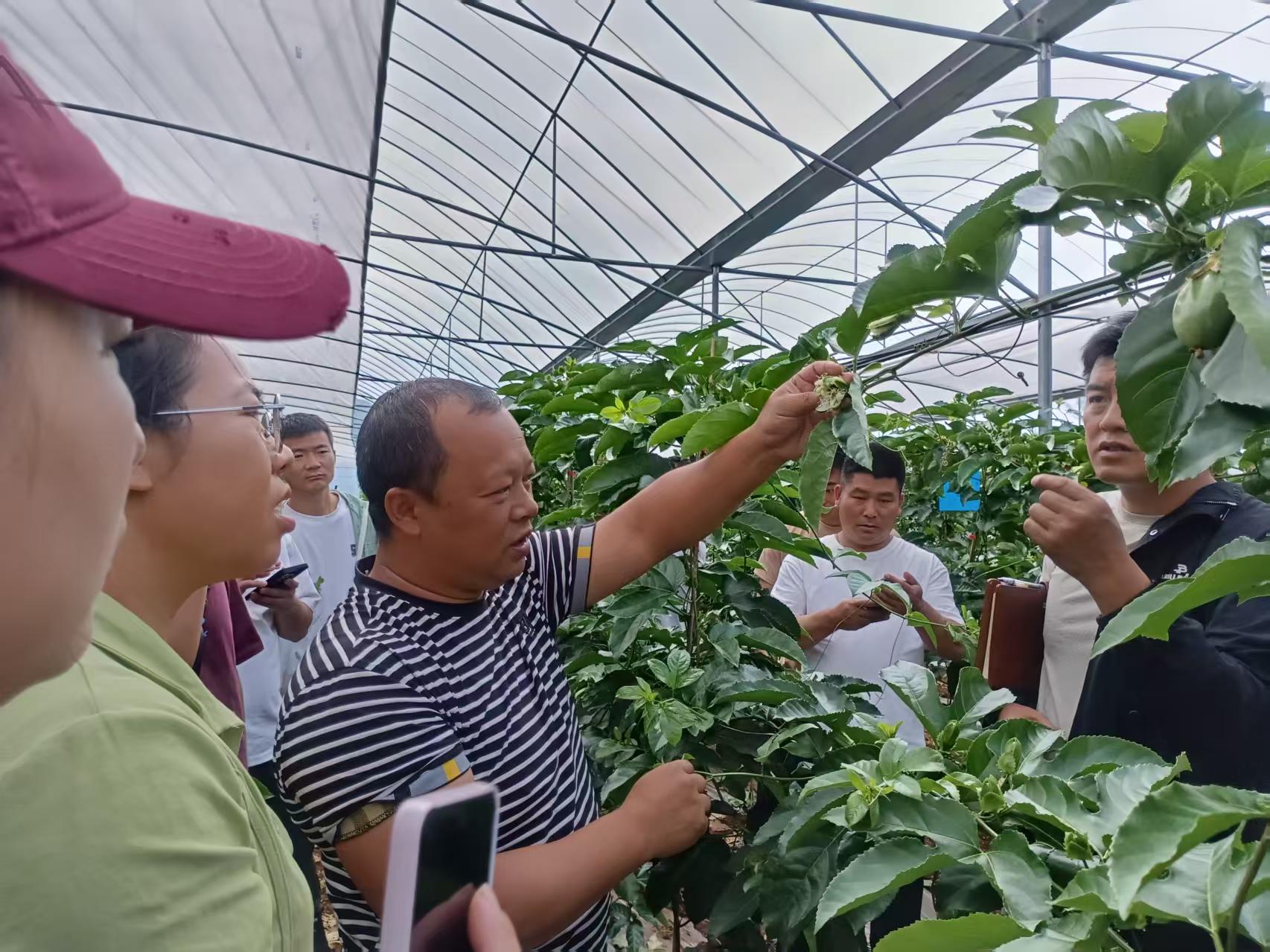 产业要长效,链条需延伸。杨志刚瞄准“种得好更要卖得好”,在基地设“党员先锋岗”,组建采摘、运输、电商队伍,打通“商超直供+直播带货”销售渠道,2024年实现销售额800万元。合作社还与当地果汁加工企业合作,推动百香果深加工成果汁、果酱等10余种产品,提升附加值。同时,他组织“最美种植户”评选,编写《百香果园管理手册》免费发放,带动32名村民成长为“土专家”。