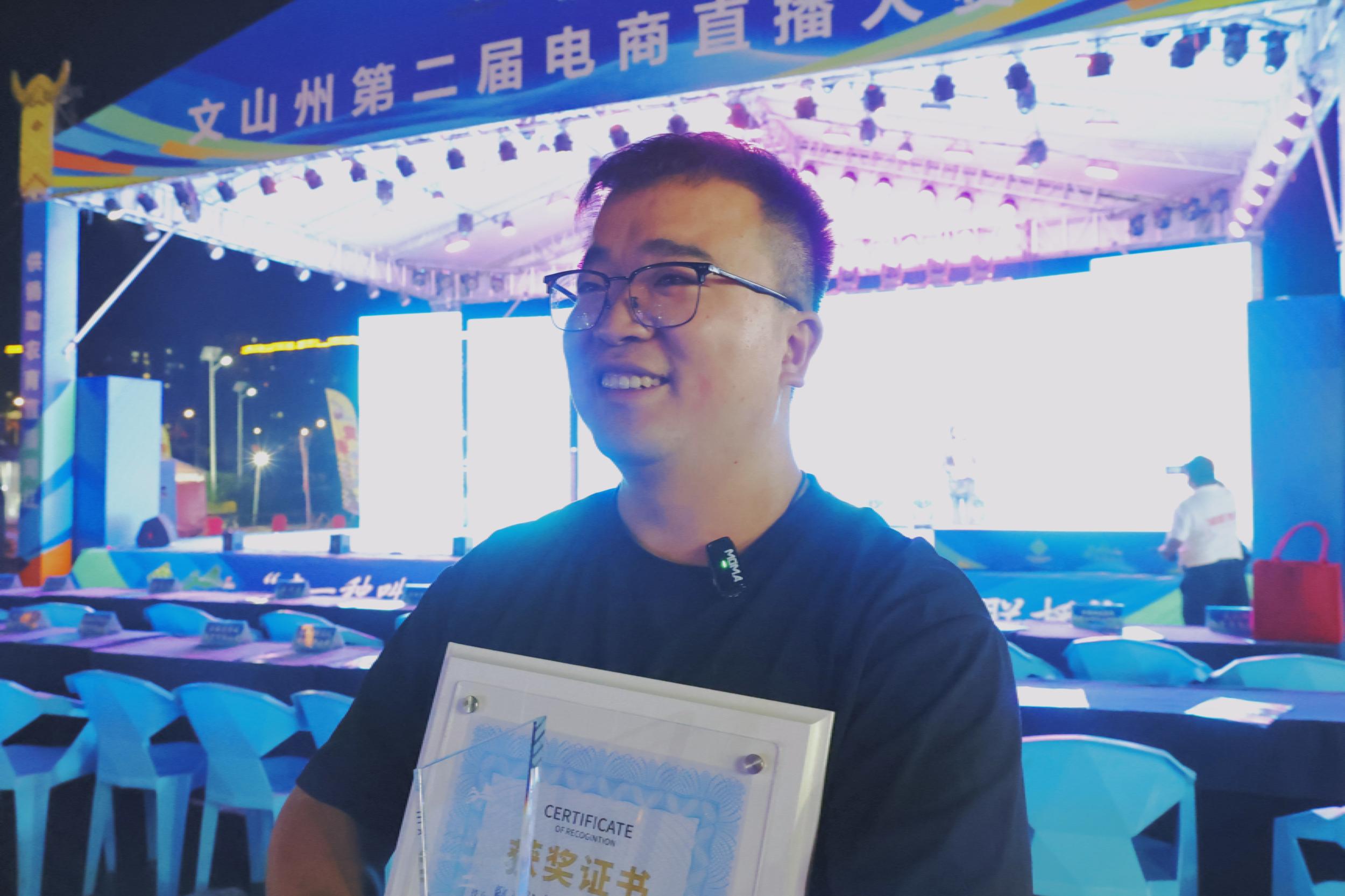 荣获本次文山州第二届电商直播大赛第一名,我深知幸运与努力皆不可或缺。这次比赛中众多同行都表现得非常优秀,我只是多了一分幸运。未来,我将继续在这条道路上踏实前行,努力让更多文山好物走出大山。