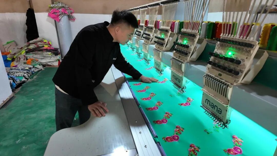 在他的努力下,公司的生产能力显著提升,机器从两台增加到十台,年营业额突破二百万元。“以前一个熟练工人每天最多能绣五六千针,现在这个机子每台每天能绣30万针,效率高得太多了。”这些绣着美丽纹饰的布料可以做衣服、围腰、鞋子、包包、背带等,订单也都排了好几个月。