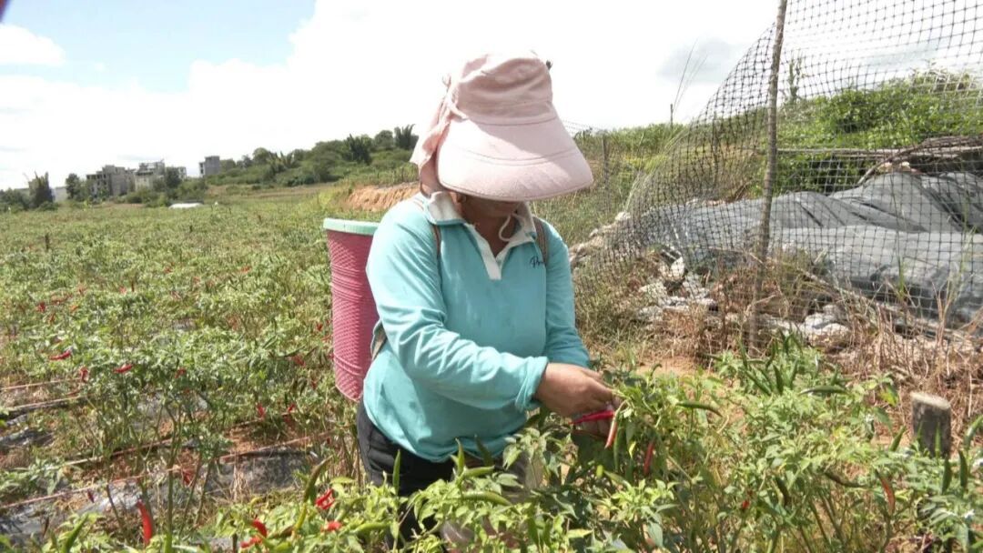 在不远处的广南莲城镇南达村,刘永珍正弯腰采摘着红彤彤的辣椒。“我是广南附近的,我们来摘辣椒,一天工钱也是一百块左右,还是有点收入。”她一边麻利地将辣椒装进竹筐,一边笑着说,“在家也没有其他事做,来做工得一点零用钱也很好。”对她而言,秋收不仅是田野的收获,更是家门口一份实实在在的生计。