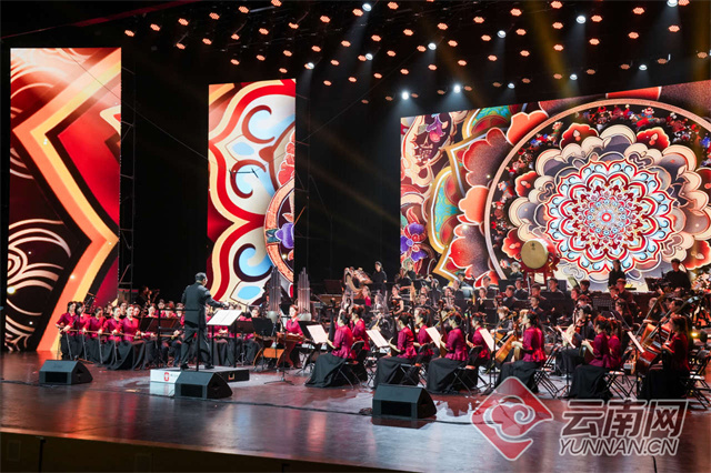 当天首演的《歌声唱响彩云南》里,“一站一站走过云南”的叙事性歌词,串联起苍山洱海、傣家竹楼等云南标志性元素,兼具通俗性与民族性的旋律成为向大众普及云南多元文化的 “音乐名片”,以“用感受传感受”的形式激发了听众对民族地域文化的探索兴趣。