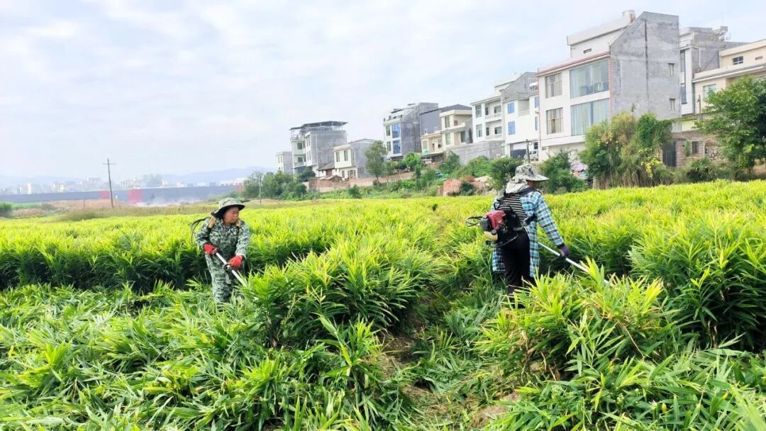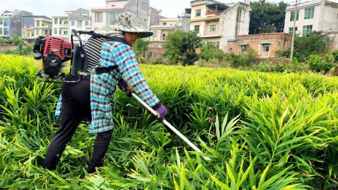 在广南县莲城镇那们村的生姜种植基地里,一片繁忙景象,工人们手持专业割姜机,分工协作,有条不紊地进行割姜杆作业。种植户朱桂军介绍,他今年种植了百余亩生姜,眼下正是生姜生长的关键时期,他表示,这项工作是确保生姜品质、促进增产增收的重要环节。