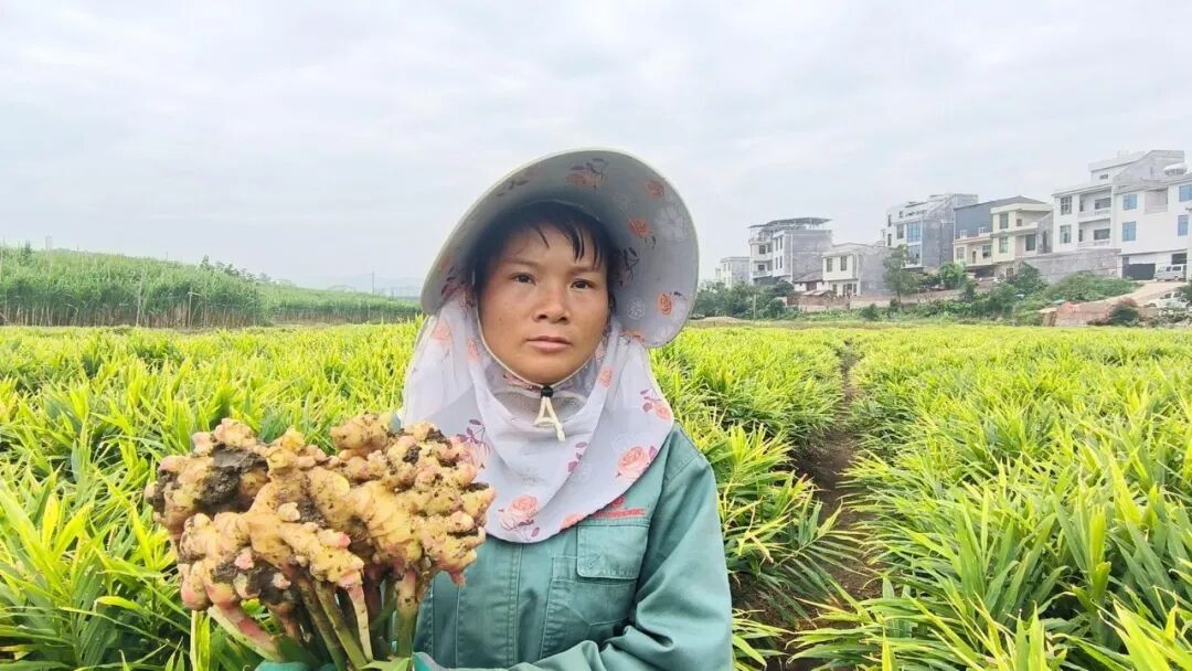 生姜种植户 朱桂军:“今年我种了100余亩姜,快要到生姜丰收的时候了,所以组织了五六名工人来割姜杆,希望生姜丰收时能有个好收成。”