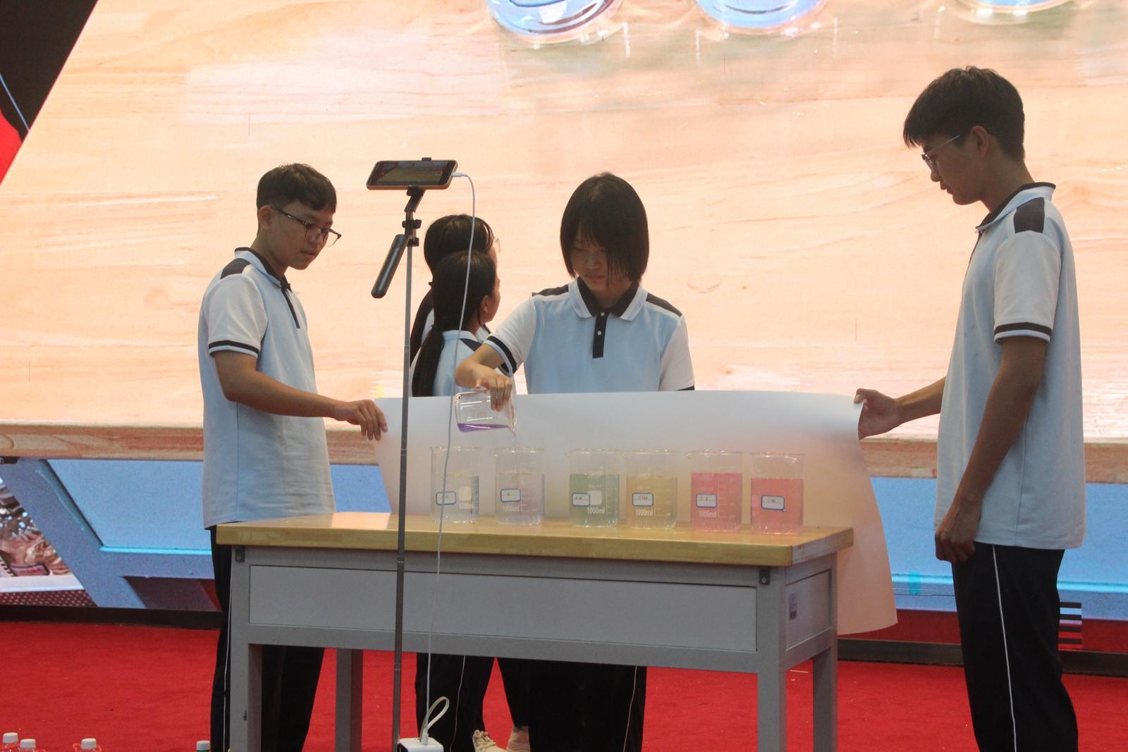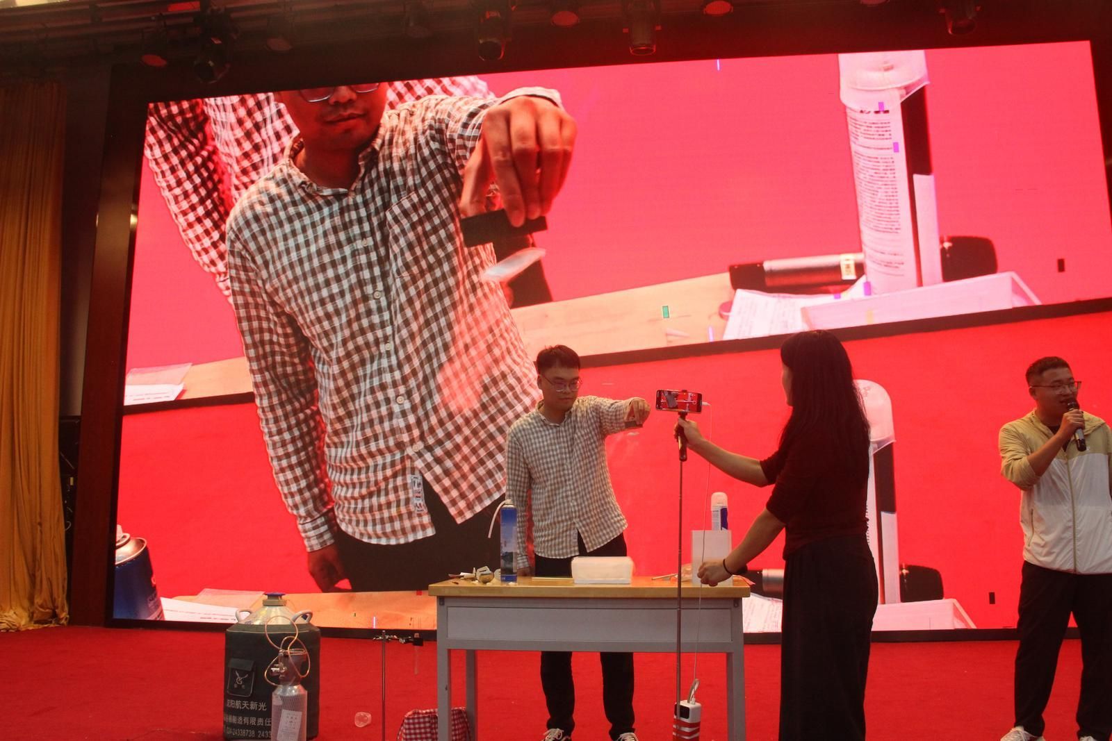现场还进行了生物实验表演、物理实验表演,并对获奖的选手进行颁奖。