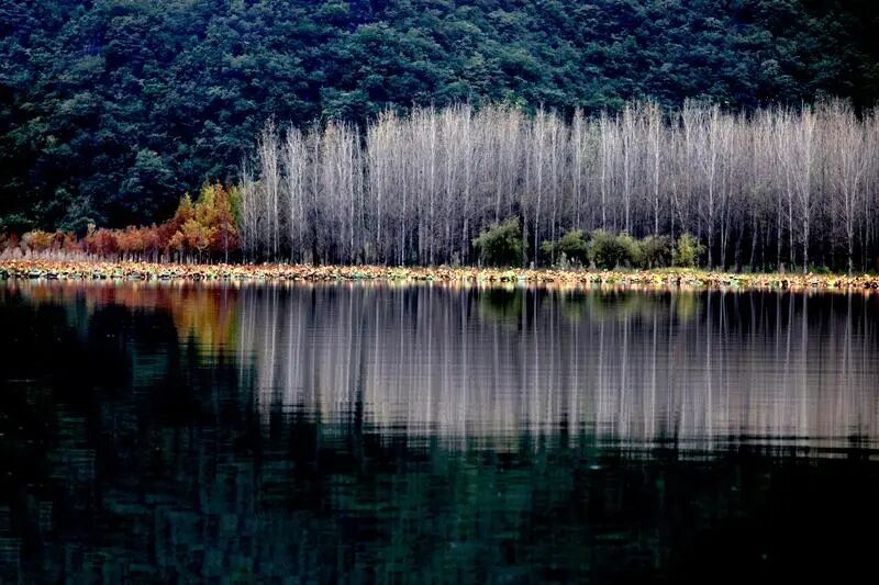 当暖阳洒落,湖水与山色相映成趣,形成迷人的“天空之镜”,喀斯特地貌的灵秀与冬日的宁静在此完美交融。