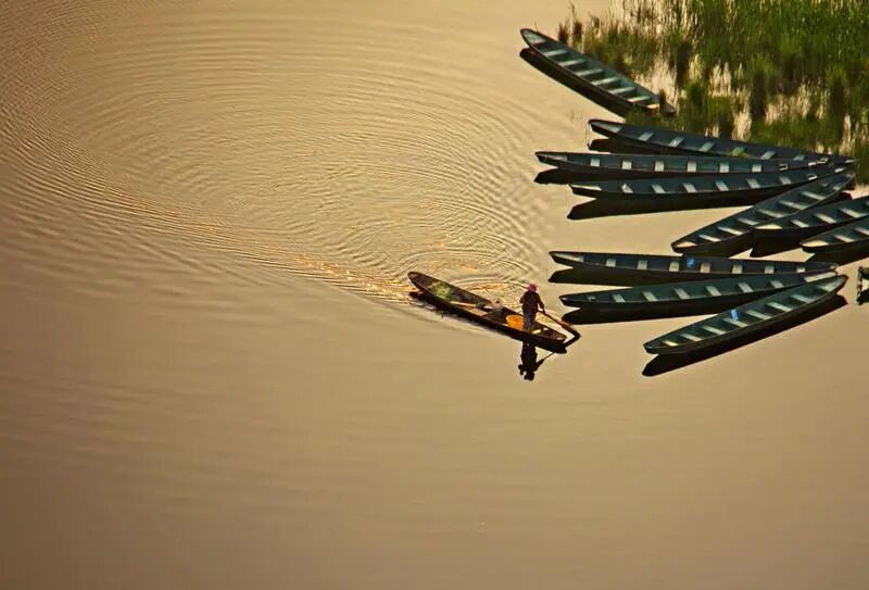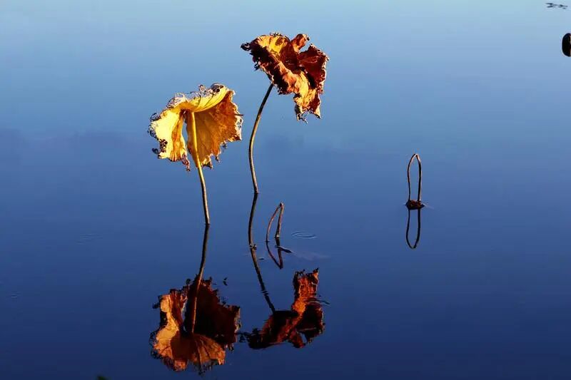 晨光中,薄雾如纱般轻轻笼罩湖面,残荷疏影间摇曳着冬日的静谧,芦苇荡中银白的絮语随风飘荡。一叶轻舟划过如镜的湖面,惊起白鹭翩跹而飞,为这幅静谧山水注入灵动生机。