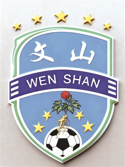 中间醒目的“文山”字样,直接点明球队所属地。下方的足球元素,是球队核心属性的直观体现,代表着足球运动。旁边的三七图案极具特色,三七是文山的标志性特产,将其融入队徽,既展现了文山的地域文化与特色物产,也寓意着球队如三七扎根大地般在足球领域深耕,汲取力量、蓬勃发展,同时也传递出文山借助足球运动,让地方特色与体育精神相互交融、走向更广阔舞台的愿景。整体设计将文山的边疆地域、特色物产与足球运动完美结合,富有辨识度与文化内涵。(陶晶晶 卢朝学)