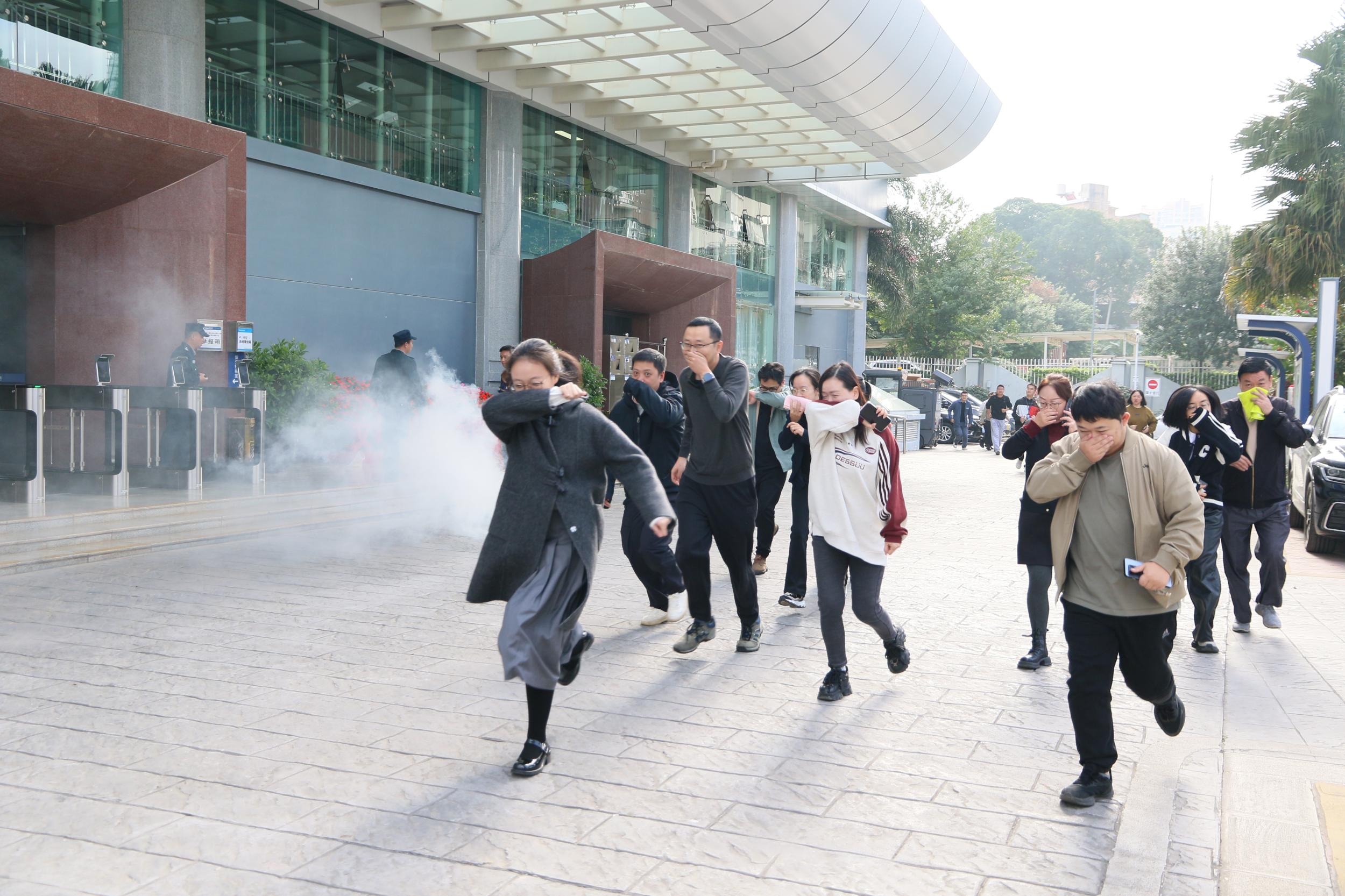 “捂住口鼻,脚下留情,不要拥挤!”疏散引导员手持应急手电筒,在烟雾缭绕的楼道内指引方向。各部门员工按照应急疏散路线,弯腰低姿快速有序撤离,帮扶小组重点协助行动不便人员,整个过程紧张而不慌乱。短短几分钟,办公楼内全体人员均安全疏散抵达指定集合点,各部门负责人迅速清点人数并向指挥小组汇报。