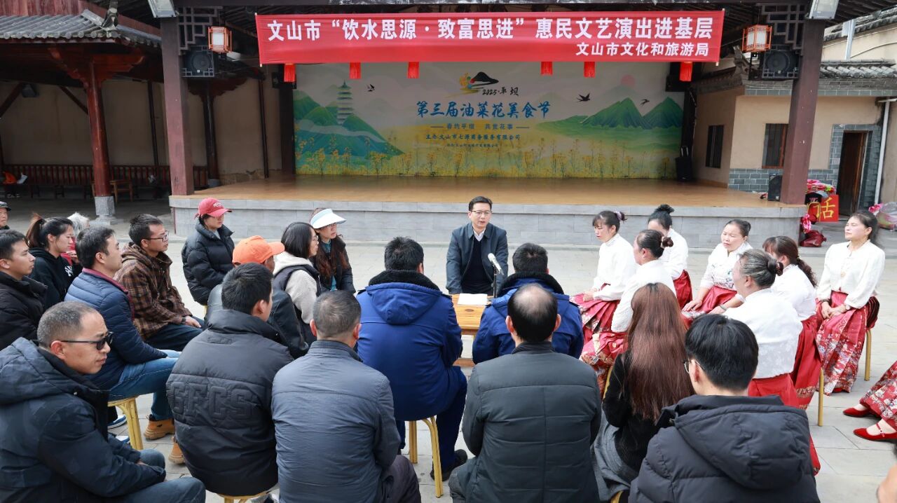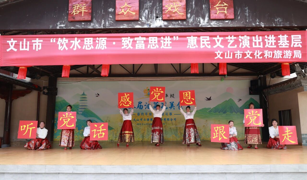 冬日的平坝古镇暖意融融,近日,文山壮族苗族自治州文山市平坝镇百姓舞台前,干部群众围坐一堂,聆听着接地气的政策解读,分享着看得见的生活变迁。随着阵阵掌声响起,文山市“饮水思源、致富思进”理论宣讲暨文艺汇演进基层活动正式启动,用“家常话”传递党的声音,用“身边事”凝聚奋进力量。