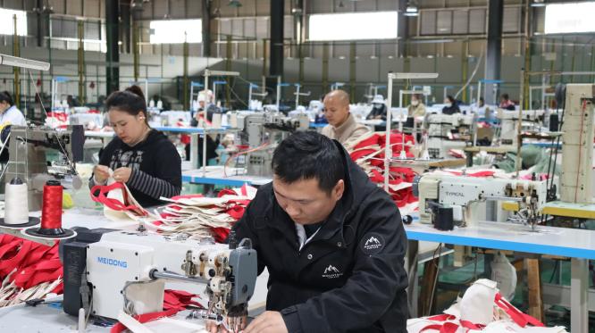 在位于文山壮族苗族自治州广南县的云南源福森工贸科技有限公司的生产车间里,流水线上崭新的刺绣布包在指尖流转,工人们正专注地完成一道道工序。