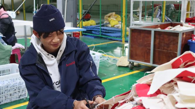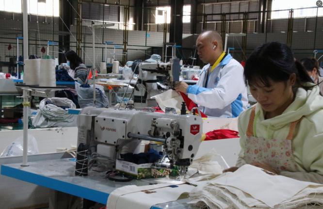 目前公司吸纳就业78人,生产线全线运转后预计将提供300—500个就业岗位。工人们多来自周边村镇,可以实现“挣钱顾家两不误”。正在剪裁线头的姚磊今年仅23岁,他高兴地说:“之前在广东打工,现在回来家门口上班我感到很幸福。”