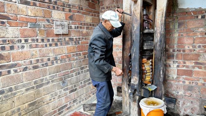 油茶满枝缀硕果,古法压榨溢芬芳。在西畴县柏林乡马蹄寨村委会景德寨村小组,农家小院里的传统油坊烟火升腾,村民们以庭院为“工坊”,靠祖辈传下的榨油技艺盘活油茶资源,让山间的“生态珍宝”化作流淌的“金色油液”,在发展特色庭院经济的道路上,酿出了乡村振兴的幸福滋味。