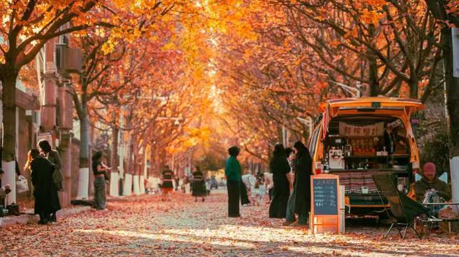 梵间枫萃咖啡店店长罗姗姗,更是看中了这里的生态与商机,历经一年多筹备在此开店:“枫叶街的风景太治愈了,希望能让更多人在赏景的同时,喝到香醇的咖啡。”市民朱女士慕名而来,逛得不亦乐乎:“这里不仅适合拍照打卡,累了有咖啡解渴,饿了有特色小吃,体验感特别好。”