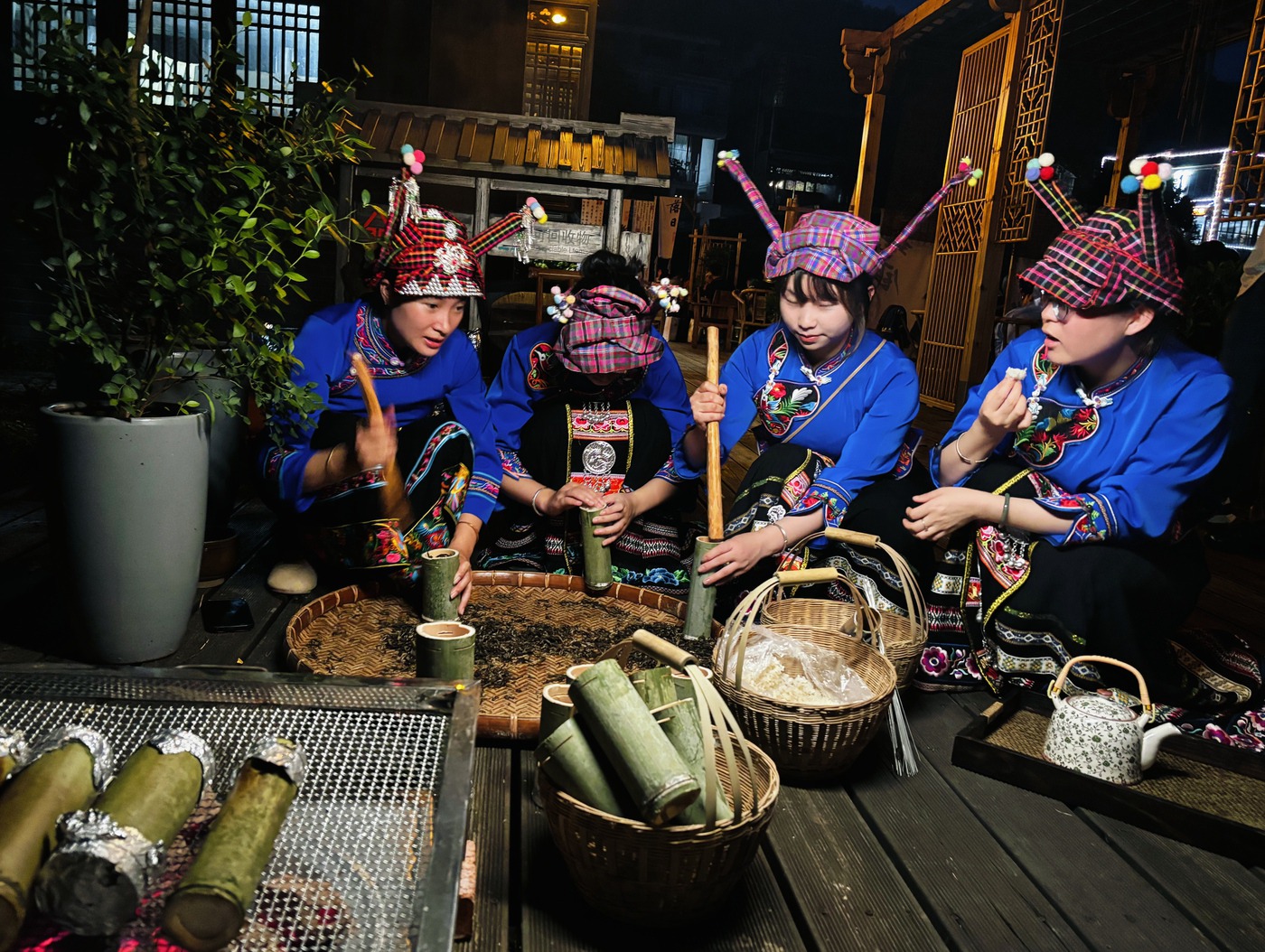 “姑娘茶源自底圩乡,已有300多年历史。”文山底圩姑娘茶叶有限公司总经理王永方娓娓道来,“它是将春尖茶叶与糯米一同装入金竹筒,经初烘、炭火慢烤制成,因是壮家少女赠予情郎的信物,故得名‘姑娘茶’。”