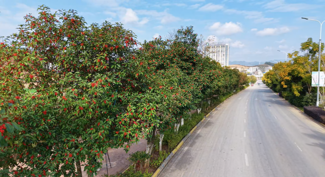 寒风料峭,草木凋零,冬日的文山壮族苗族自治州广南县街头却藏着一抹亮眼的“中国红”。近日,广南城区多条主干道、公园内的铁冬青进入最佳观赏期,满树鲜红的果实挂满枝头,在苍劲绿叶的映衬下,宛如一串串红灯笼,为萧瑟冬日注入鲜活生机。