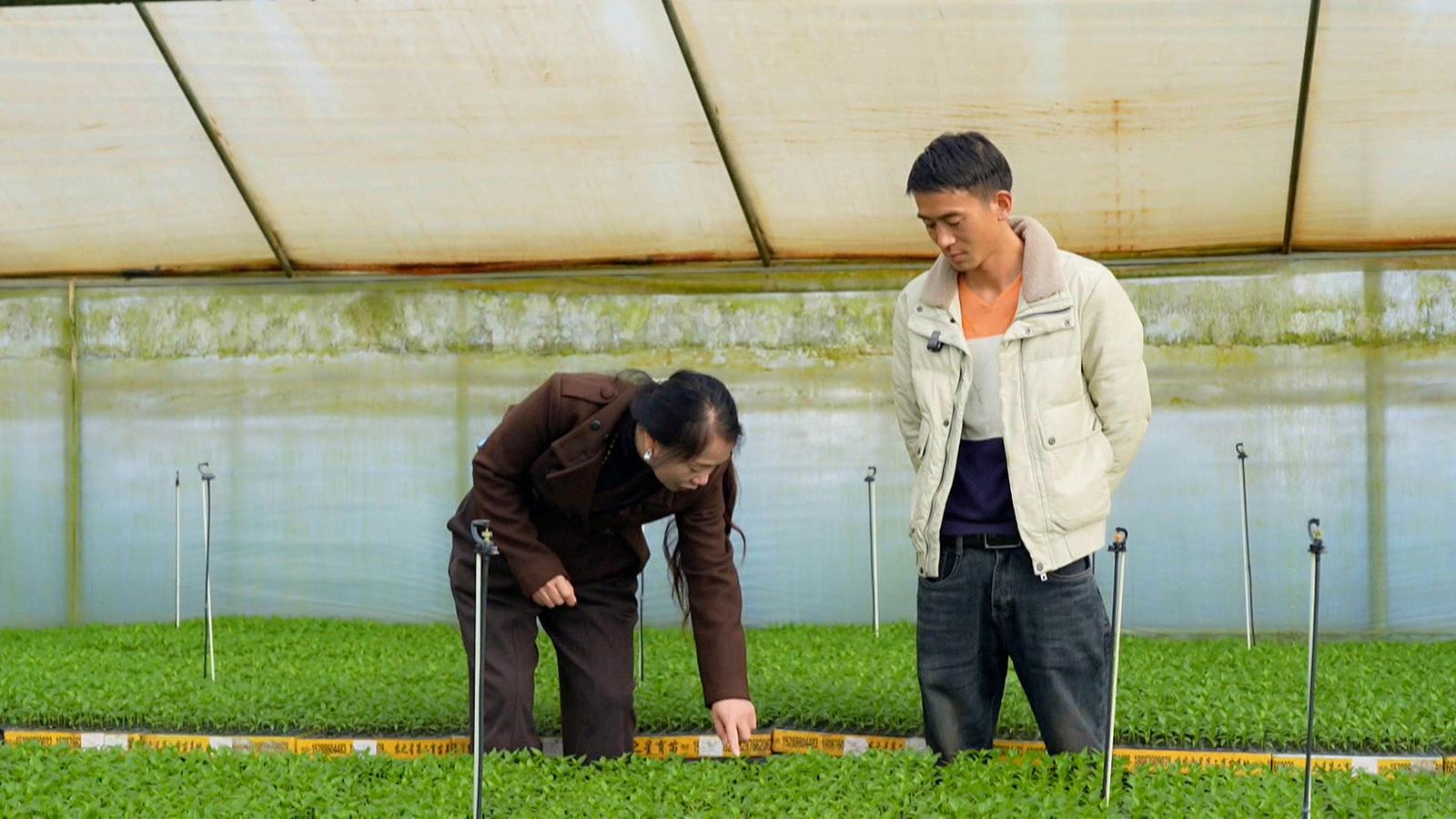 基地负责人代忠映正穿梭于苗盘间,仔细查看苗情、剔除病株,全力保障秧苗健壮成长。