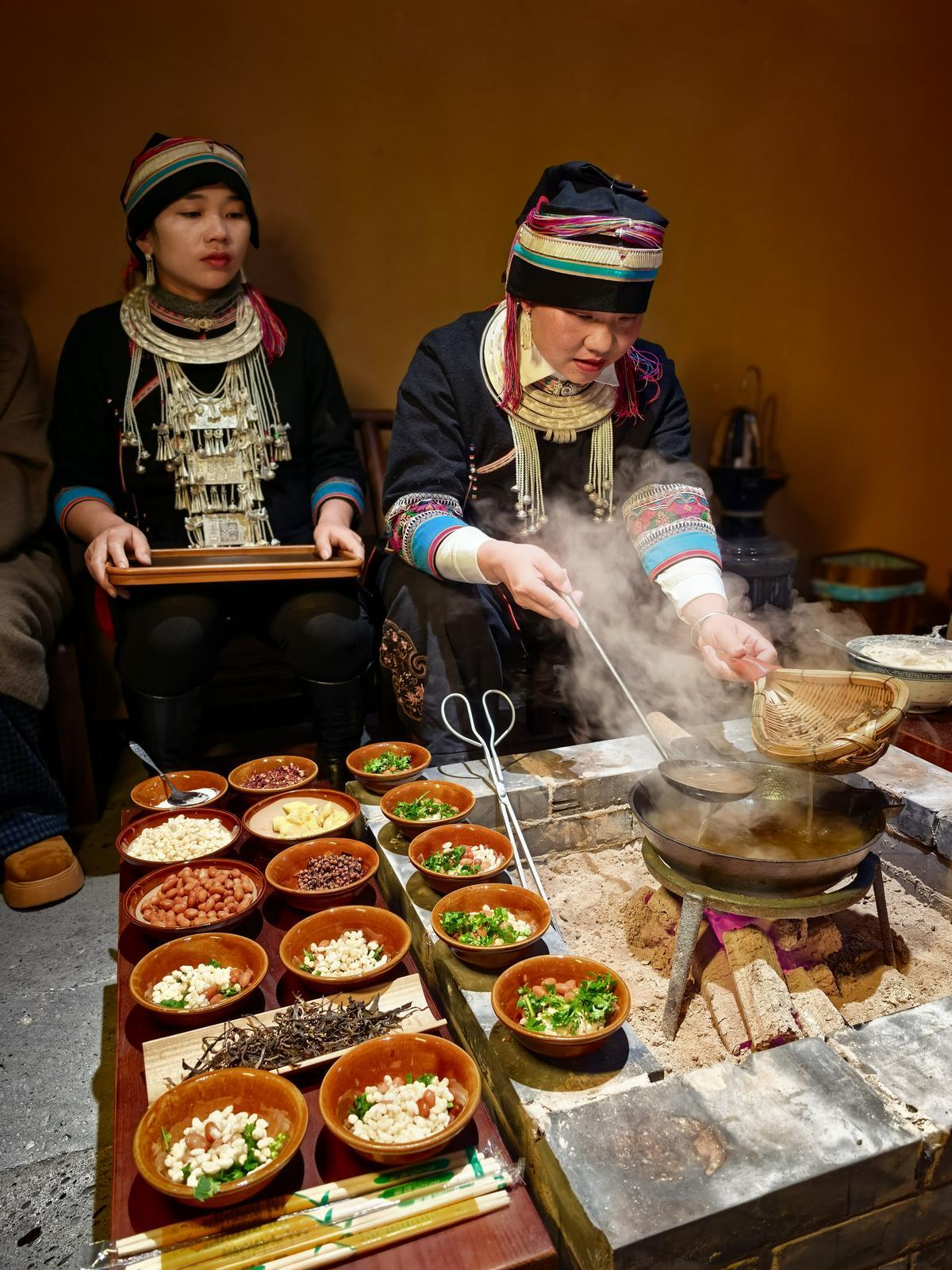 记者感受到,文山州茶文化展示传播空间不仅是一个品茶会友的极佳场所,更是文山州茶文化传承与创新的缩影。这里专门设置了一间火塘茶室,大家围坐在一起,品尝瑶族同胞茶俗“咸油茶”。咸油茶可谓是文山茶文化的“味觉名片”,其制作方法独特,将茶与姜先用猪油爆香,加入热水与盐熬出茶汤,冲入提前放好米花、芫荽等佐料的碗内。一口茶汤饮下,全身暖意顿生……