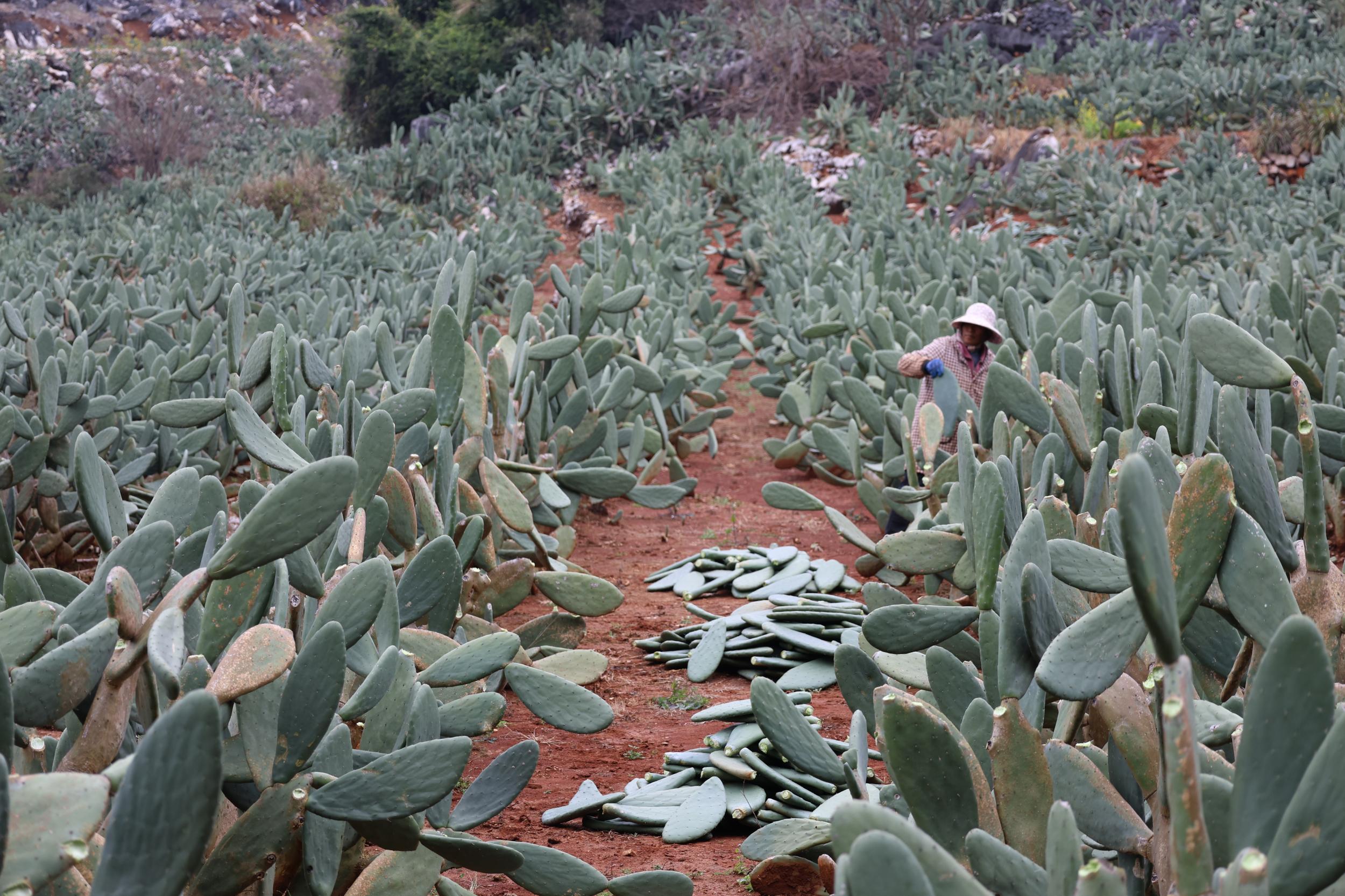 据了解,庄子田村的仙人掌种植已有两百年历史。过去,村民主要看重其果实部分,叶片往往无人管理,任其自行掉落腐烂。同时由于缺乏销售渠道,村民只能将果实一筐一筐背到市区售卖,销售效率低、利润微薄。为改变这一局面,2023年庄子田村引入壹亩良田(云南)农业投资有限公司。企业深入分析仙人掌的食用、药用及化妆品研发价值,不仅继续开发果实产品,更将以往被忽视的叶片纳入深加工体系,从而打破以往仅依赖果实的局限。通过拓展叶片用途、开发多元产品,村里逐步拓宽了销售渠道,将仙人掌相关产品推向全国市场。