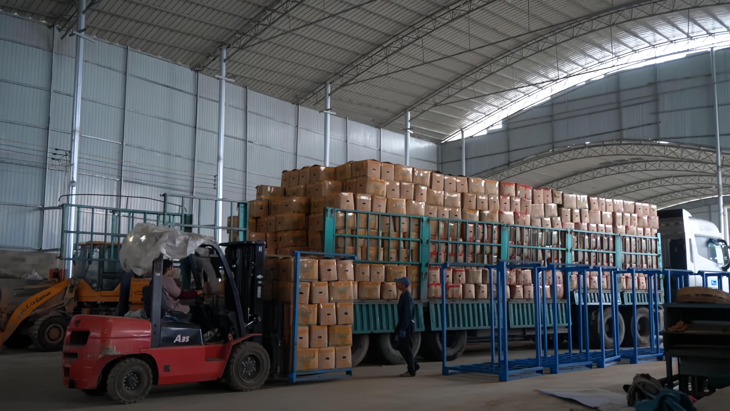 尾季辣椒持续热销的背后,是一条日益完善的产业链在支撑。目前,稼依镇内多条烘烤生产线仍在高效运转,将新鲜的尾季辣椒及时烘干加工,显著提升产品附加值。全镇350座冷链仓储设施内,经过分级、打包的干椒整齐码放,正通过覆盖全国的物流网络发往各地。
