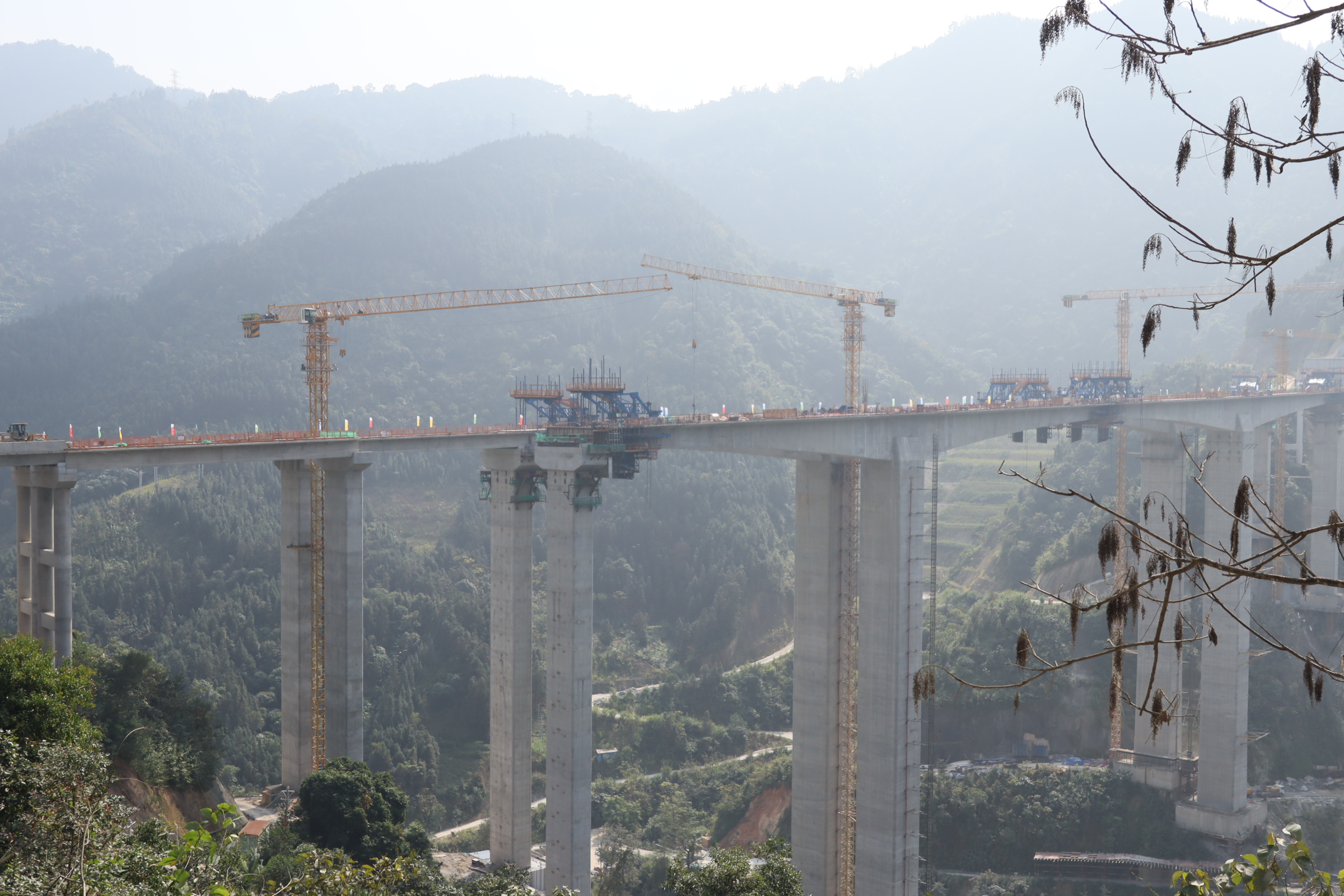 自2023年9月启动桩基施工以来,项目团队克服深V峡谷机械进场难题,通过搭建钢平台与人工挖孔等方式,完成全部100根桩基施工。面对120.5米高墩柱,团队采用液压爬模工艺,优化劲性骨架与主筋设计,在保障安全质量的同时节约了工期与成本。