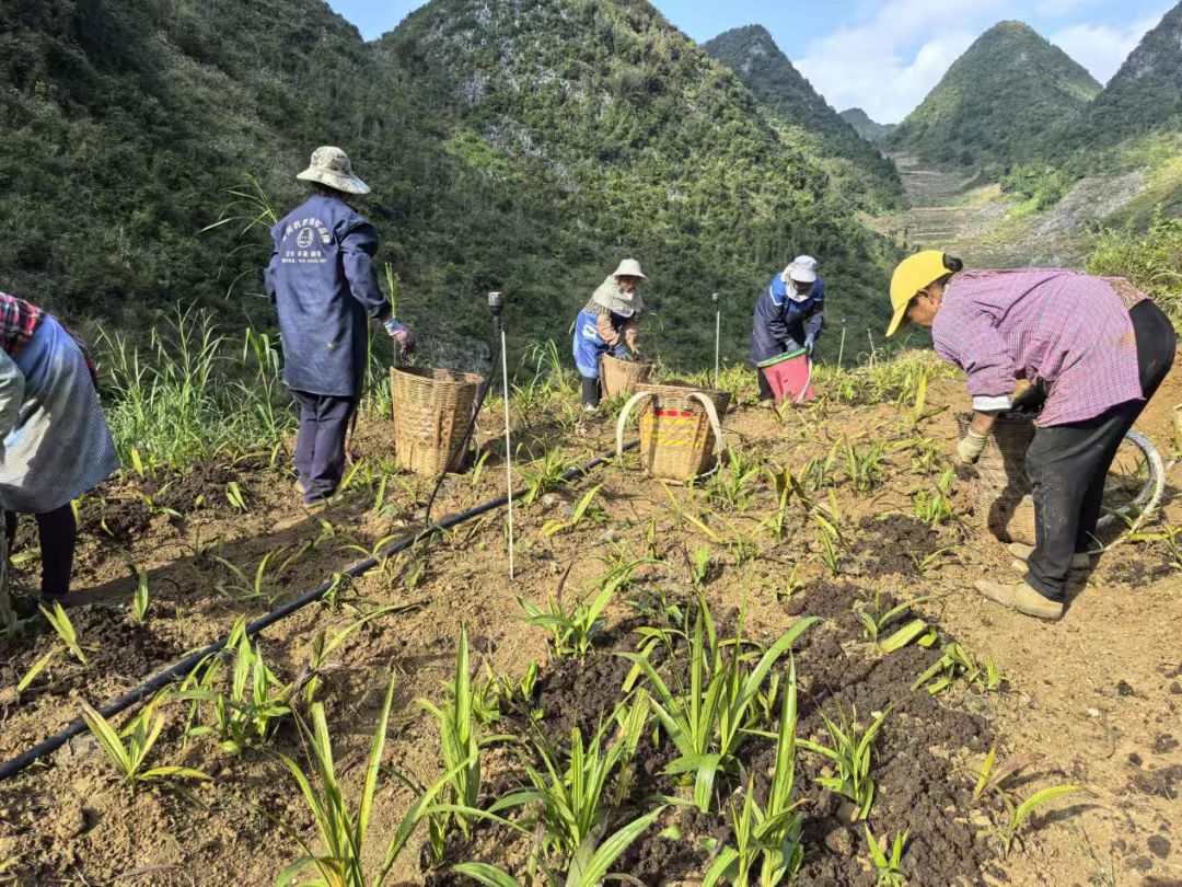 “一天能挣100块,一个月干20多天,还能照顾老人孩子,比外出打工划算!”正在田间施肥的村民笑着说道。基地采用“公司+基地+农户”的发展模式,不仅盘活了石山片区效益低下的土地资源,更搭建起稳固的利益联结机制。基地常年吸纳当地村民务工,年用工量达2000余人次,发放工资超20万元;村民们既能收取土地流转租金,又能通过务工增收,实现了家门口就业致富的心愿。从种苗培育、日常管护到采收加工,产业链各环节优先雇佣本地劳动力,让群众实实在在分享到产业发展的红利。