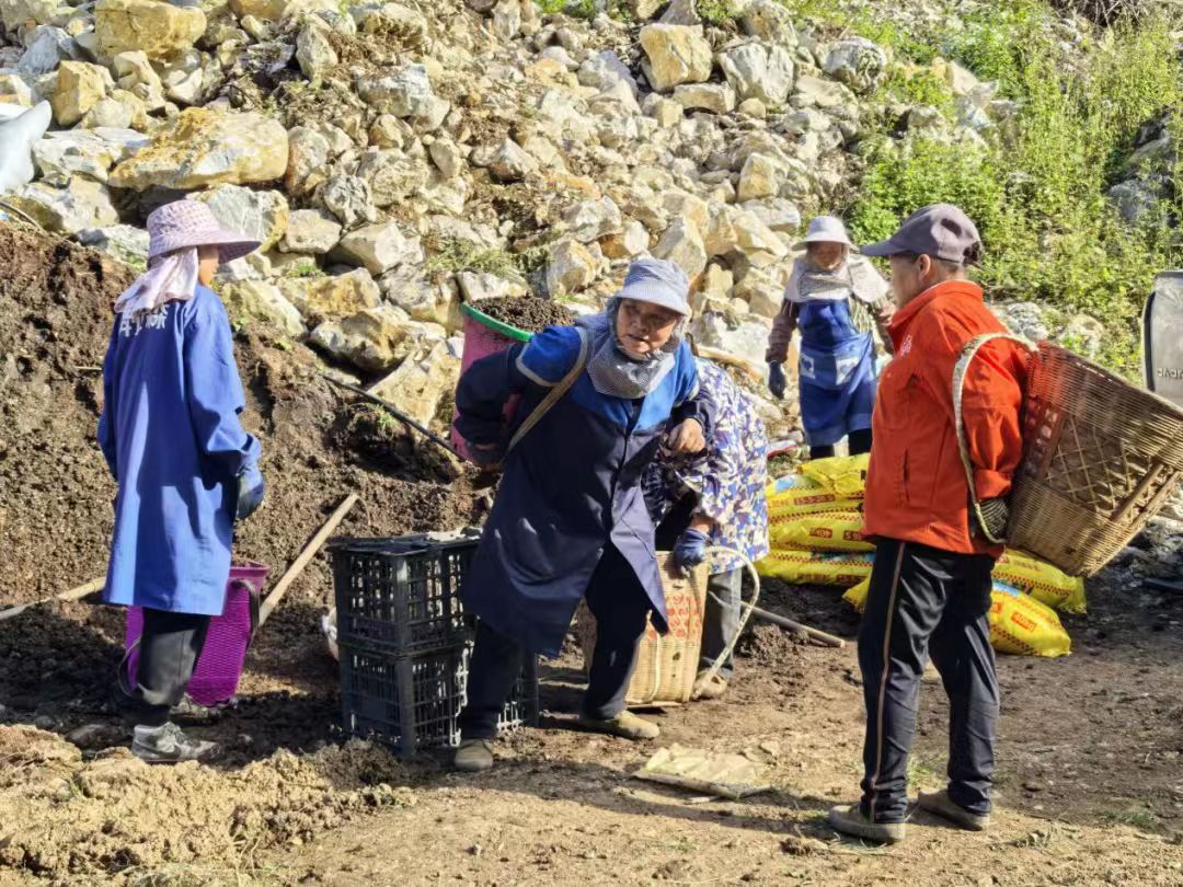 冬季是白芨管护的关键期,基地技术团队因地制宜制定管护方案。考虑到石山地形崎岖,工人们采用背筐运肥的方式,将肥料精准施洒在白芨茎叶基部,最大限度减少对植株的损伤。精细化管护下,这片白芨基地预计产能可达400吨,按当前市场价测算,产值有望突破500万元。