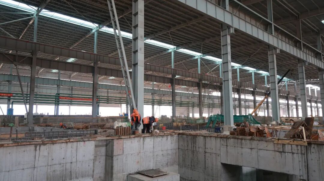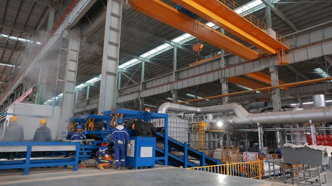 内部同步开展的还有生产线基础设施施工,工人们分为多组,对熔炼炉的混凝土浇筑、钢结构的安装、各类设备基础及预埋件、坑道开挖等进行精细化作业,为后续大型设备的进驻奠定坚实基础。预处理厂房和熔铸厂房计划今年4月全部完工,其中熔铸车间共规划5条生产线,第一条生产线于1月初建设完成,且具备生产条件。