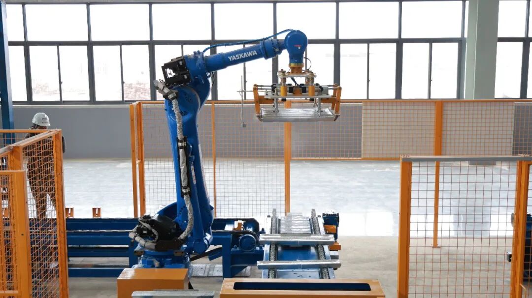 “合金锭生产线预计产能为10万吨,扁锭生产线预计年产能78万吨。自动化程度相对说还是比较高的,工人主要负责原料加入、静置、扒渣等,之后的称重、打包入库、机器人码垛等环节都是自动的。”云南剑涛新材料智造产业园制造中心熔铸事业部总监代长伟说道。