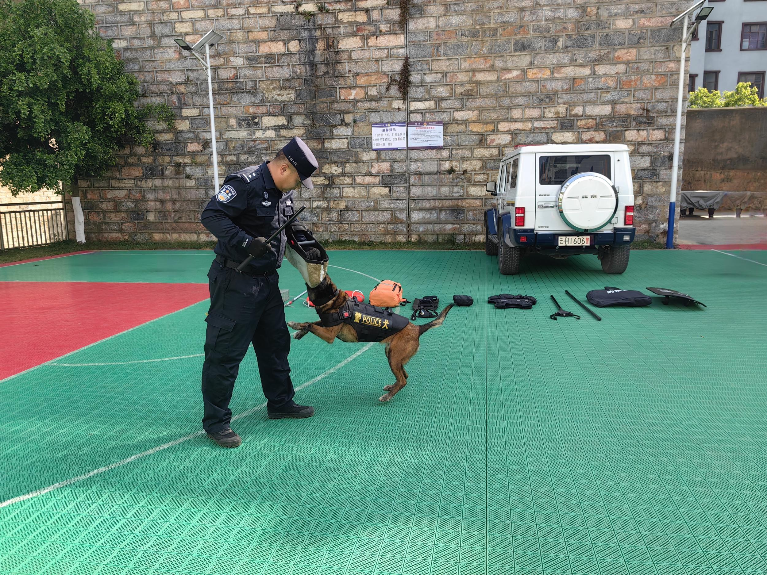 最受期待的环节当属警犬表演。董占边境检查站的警犬训导员一声令下,警犬“玄战”迅速出击,精准完成扑咬、抓捕等一系列动作,灵活矫健的身姿赢得全场热烈掌声。互动环节中,孩子们兴奋地围上前与“玄战”合影,在近距离接触中感受警犬的忠诚与专业。