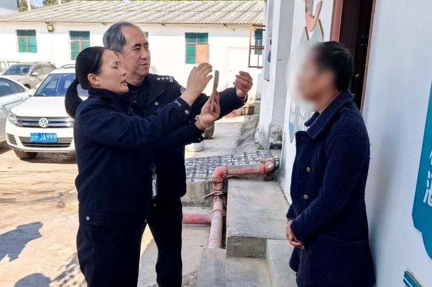 民警灵活调整拍摄角度