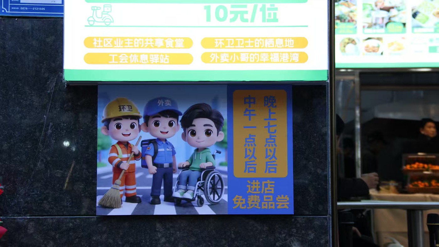 “我们小区老人小孩多,煮饭不方便,所以才打造了幸福食堂。现在,我们想把这份服务分享给更多人。”文山畅林物业服务有限责任公司董事长杨秋荣介绍,食堂始终坚守“不卖隔夜菜”的原则,更许下了一份温暖承诺:每天中午1时、傍晚7时后,环卫工人、外卖员、残障人士及有需要的群众进店用餐,均可享受免费福利;若高峰时段后仍有剩余菜品,工作人员会打包好送给周边有需要的人。