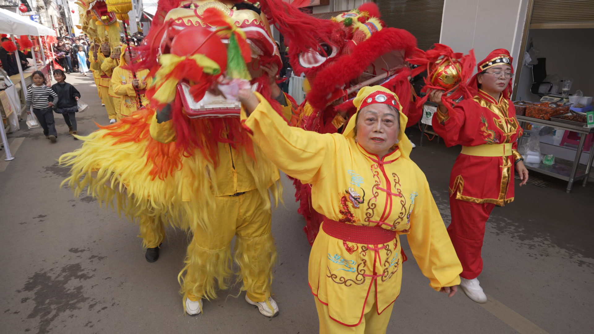 当天13∶00,年货街在平远镇田心社区民族团结幸福路入口牌坊处正式开街。锣鼓声震天响起,街头巷尾人头攒动,火龙在人群中灵动翻腾,雄狮随着铿锵的鼓点欢腾跳跃,瞬间点燃了整条街的气氛。