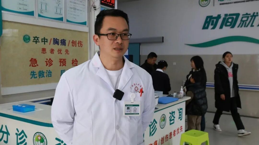 如果说消化内科的坚守是细水长流的守护,那么急诊医学科的坚守,便是与时间赛跑、与病魔博弈的紧急担当。年关将至,年味愈浓,广南县人民医院也迎来了就医高峰,急诊大厅里人来人往,呼救声、仪器的滴答声、医护人员的叮嘱声交织在一起,这里没有春节的松弛,只有分秒必争的忙碌,只有全力以赴地坚守。