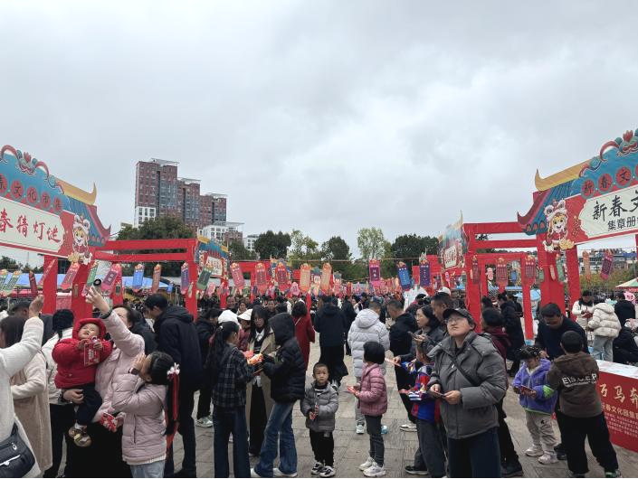 文化游园妙趣横生,传统年味浸润民心。新春文化园内人头攒动,猜灯谜、“新春阅读乐”古诗趣味填空、经典诵读、文物拓印、蓝靛扎染体验等十余项互动项目同步开展。非遗技艺与趣味游戏巧妙结合,让市民在参与中感受传统文化魅力。丰富的奖品和体验环节,不仅增添了节日仪式感,也让群众在精神与物质上都有收获。