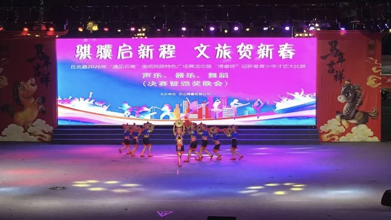2月19日晚,2026年“思源思进”春节联欢晚会在舞蹈《春节序曲》中拉开帷幕。整场演出融合歌舞、器乐、原创歌曲等多种形式,展现丘北独特的地域文化。二胡合奏《赛马》旋律激昂,奏响马年奋进乐章;原创歌曲《饮水思源》唱出乡村振兴进程中干群同心、感恩故土的情怀。16个节目轮番上演,现场掌声不断。这场由本土文艺力量打造的“丘北人自己的春晚”,生动实践了以文化人、以文兴业的发展理念。