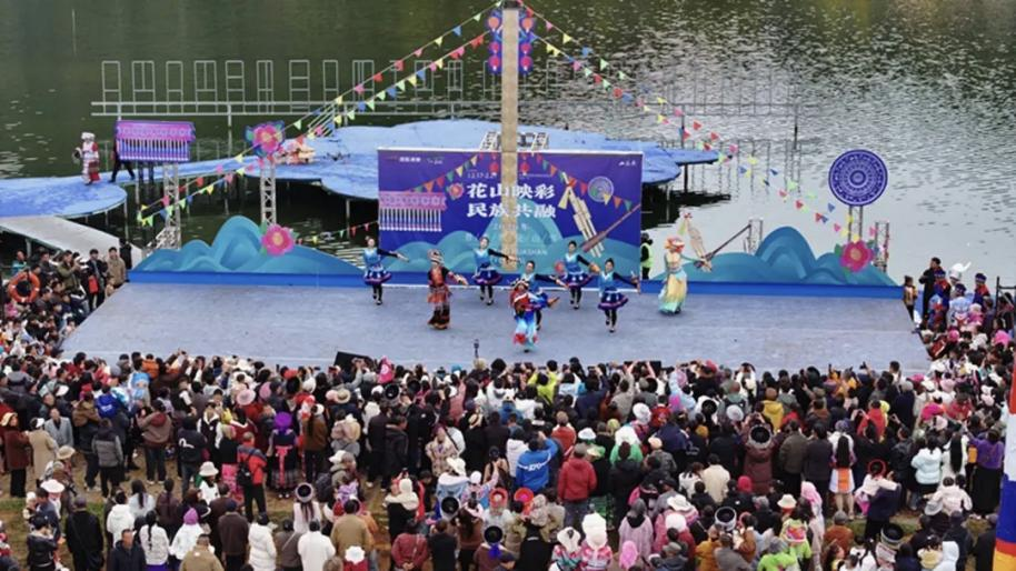 除城区活动外,普者黑景区同样精彩纷呈。正月初三至初七,景区浪漫广场举办花山节系列活动,涵盖文艺演出、踢脚架、打陀螺等传统民俗项目,并融入美食体验、苗族服饰展示等内容。开幕式当天,苗族同胞祭花杆、爬花杆、载歌载舞,祈福纳祥,为游客营造沉浸式节庆体验。景区、酒店、商圈同步推出优惠套餐,有效激发假日消费潜力,推动文旅融合高质量发展,助力乡村振兴。