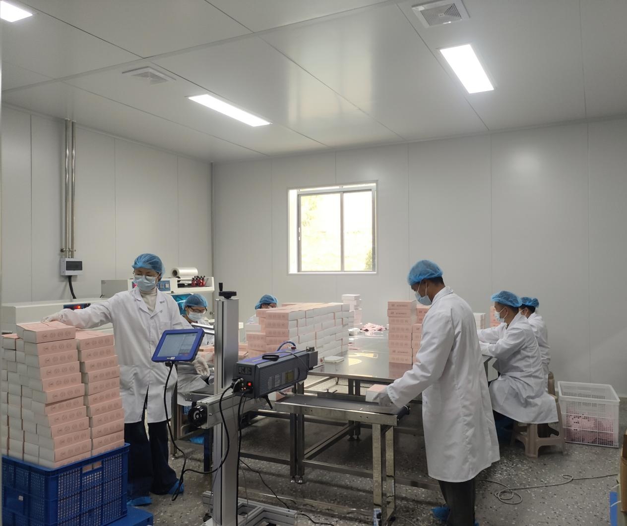 据悉,该公司复工复产后,两条生产线同步发力,产能实现大幅提升。“我们整个生产车间主要涉及两条生产线,一条是30毫升原浆液生产线,另外一条是1千克至25千克大袋原浆液生产线,日均产量可以达到5万至8万袋,年产量可以达到2500万至3000万袋,产值上亿元。”生产车间负责人王虹信心满满。