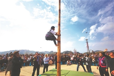 原标题:花山节上攀花杆 民俗盛宴庆马年