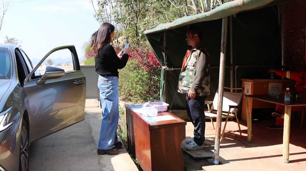 莲花塘乡作为森林防火重点区域,在进山路口、林区关键节点布起“第一道防线”。固定卡点与临时检查点协同联动,严格执行24小时值班值守,对进山人员、车辆逐一落实实名登记、扫码核验、火源收缴、防火告知闭环管理,做到逢车必查、逢人必问,坚决把火源堵在山下林外。