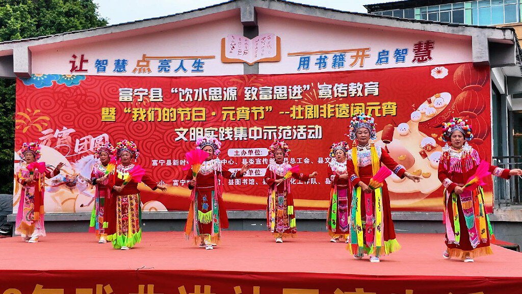 元宵佳节到来之际,文山壮族苗族自治州富宁县以“我们的节日·元宵节”为载体,举办“饮水思源 致富思进”宣传教育暨壮剧非遗闹元宵文明实践活动。壮剧展演、亲子研学、红色教育、猜灯谜、品汤圆等沉浸式体验轮番上演,让市民在浓郁年味与文脉书香中欢度佳节、共话团圆,在欢声笑语里感念党恩、凝聚奋进力量。